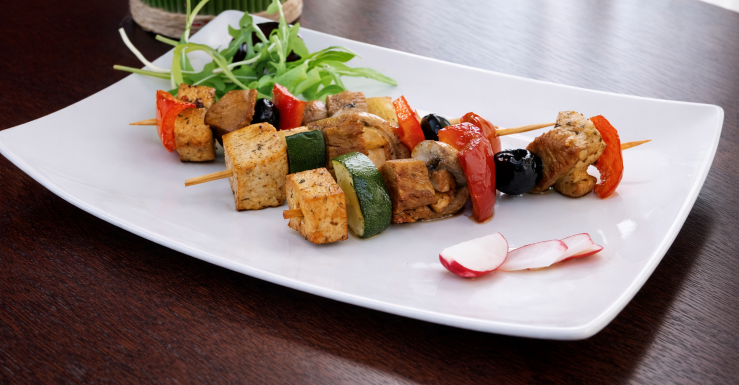 Ražnjići sa seitanom povrćem i tofuom - Aromatična palenta - Varivo od mahuna